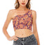 Orange Bohemian Floral Pattern Print One Shoulder Crop Top