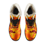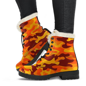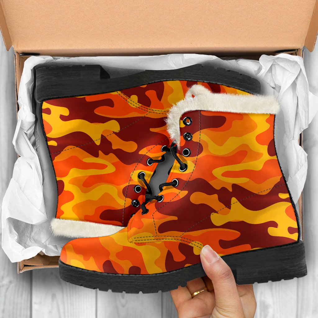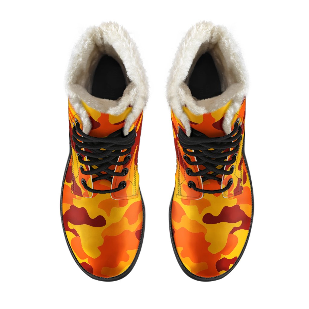 Combine cozy warmth with standout style in the versatile Orange Camouflage Print Faux Fur Leather Boots. Designed to keep you comfortable without compromising on fashion, these faux fur leather boots are a must-have addition to your footwear collection. Whether you’re braving chilly weather or adding an edgy touch to your outfit, these boots offer the perfect mix of practicality and personality.