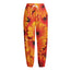 Orange Daisy Flower Print Fleece Lined Knit Pants