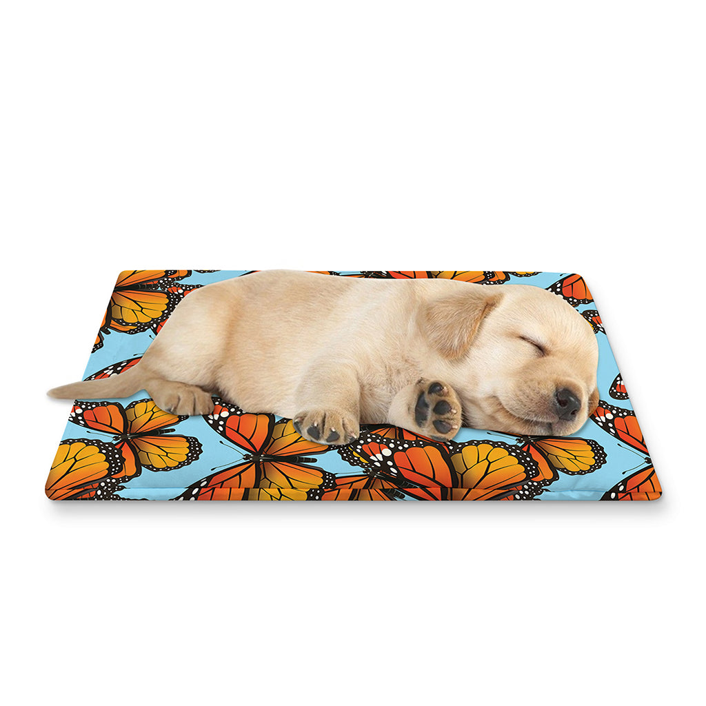The Orange Monarch Butterflies Pattern Print Pet Cooling Mat Cover is ideal for small to medium-sized pets such as cats and dogs. Whether placed in a crate, on the floor, or in your car, it adds comfort without requiring any complex setup. It's a practical choice for pet owners looking for something stylish, functional, and easy to maintain.