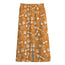 Orange Paw And Bone Pattern Print Cotton Front Slit Maxi Skirt