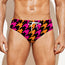 Are you looking for unique men's swim briefs? Check our Orange Pink And Black Houndstooth Print Men's Swim Briefs on GearFrost. Our swim briefs are handcrafted to the highest quality standards and made-to-order for you!