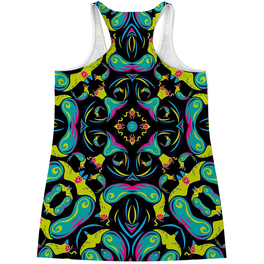 Stay cool and stylish with the versatile Ornament Psychedelic Trippy Print Women's Racerback Tank Top. Designed for women who prioritize comfort and functionality, this racerback tank top is the perfect addition to your active and casual wardrobe. Whether you’re working out, running errands, or relaxing at home, this tank top offers a sleek and flattering fit that keeps you looking great and feeling confident.