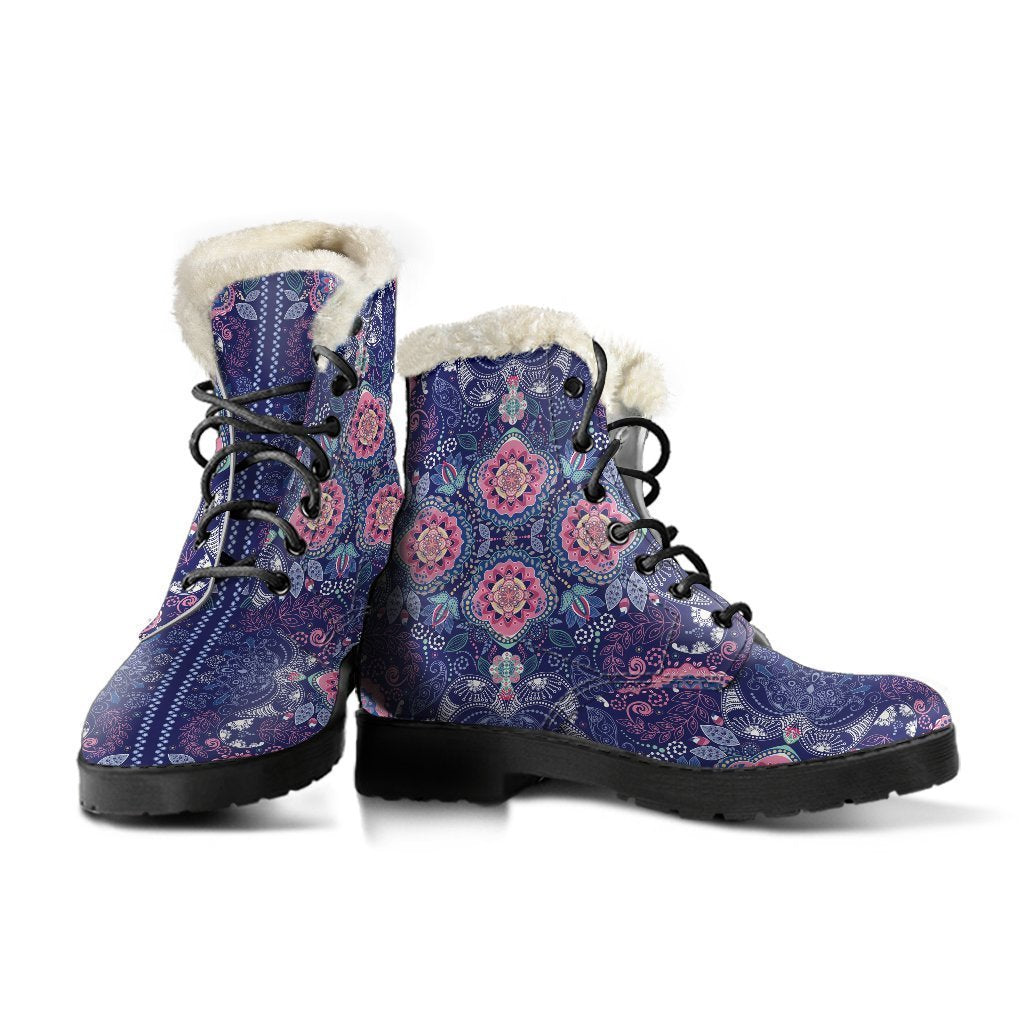 Combine cozy warmth with standout style in the versatile Ornamental Paisley Mandala Print Faux Fur Leather Boots. Designed to keep you comfortable without compromising on fashion, these faux fur leather boots are a must-have addition to your footwear collection. Whether you’re braving chilly weather or adding an edgy touch to your outfit, these boots offer the perfect mix of practicality and personality.
