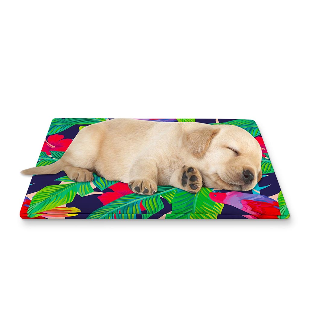The Parrot Banana Leaf Hawaii Pattern Print Pet Cooling Mat Cover is ideal for small to medium-sized pets such as cats and dogs. Whether placed in a crate, on the floor, or in your car, it adds comfort without requiring any complex setup. It's a practical choice for pet owners looking for something stylish, functional, and easy to maintain.