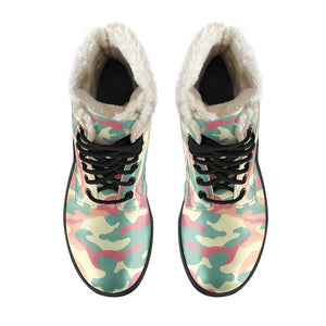 Combine cozy warmth with standout style in the versatile Pastel Camouflage Print Faux Fur Leather Boots. Designed to keep you comfortable without compromising on fashion, these faux fur leather boots are a must-have addition to your footwear collection. Whether you’re braving chilly weather or adding an edgy touch to your outfit, these boots offer the perfect mix of practicality and personality.