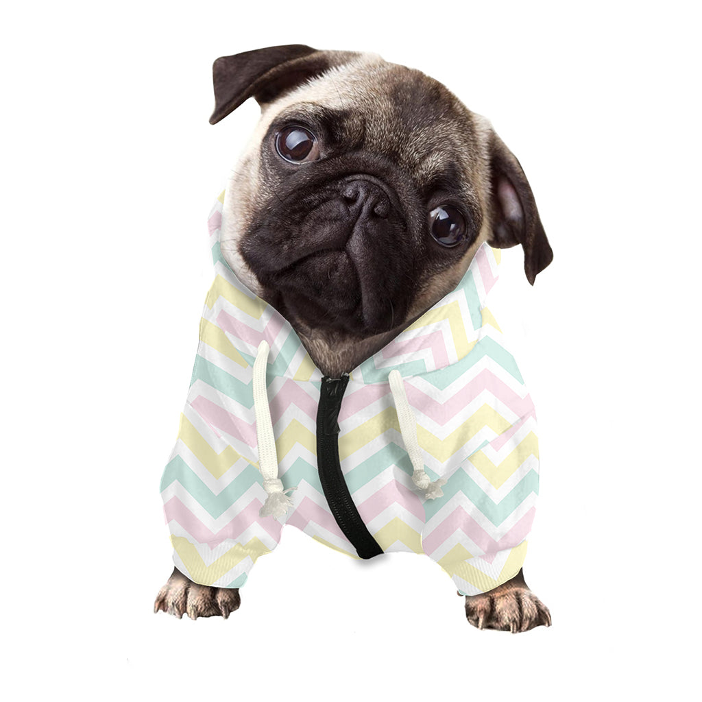 The Pastel Chevron Pattern Print Dog Zip Up Hoodie is more than just pet clothing—it’s a way to express your style while offering practical benefits. From lounging at home to neighborhood strolls, this hoodie provides an easy wardrobe addition for pets that don't mind dressing up.
