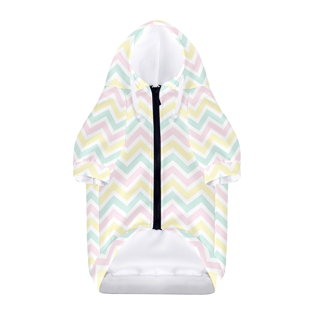 Keep your pet cozy and stylish with the Pastel Chevron Pattern Print Dog Zip Up Hoodie. Designed for everyday wear, this lightweight hoodie provides comfort and a bit of flair without overcomplicating your pet’s routine. Whether you're heading out for a walk or relaxing at home, it's a simple way to keep your furry friend warm and snug.