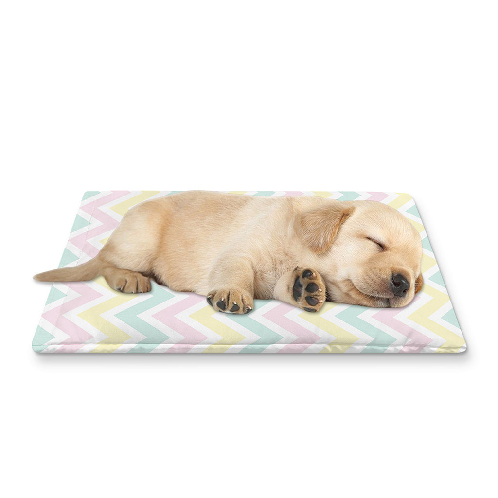 The Pastel Chevron Pattern Print Pet Cooling Mat Cover is ideal for small to medium-sized pets such as cats and dogs. Whether placed in a crate, on the floor, or in your car, it adds comfort without requiring any complex setup. It's a practical choice for pet owners looking for something stylish, functional, and easy to maintain.