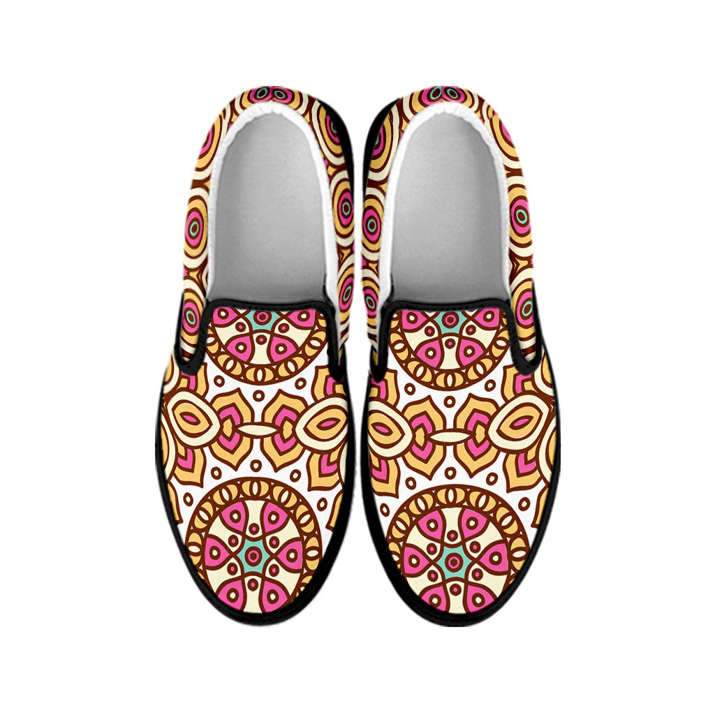 Are you looking for unique sneakers? Check our Pastel Ethnic Mandala Print Black Slip On Sneakers on GearFrost. Our sneakers are handcrafted to the highest quality standards and made-to-order for you!