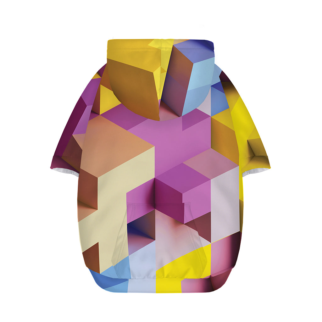 The Pastel Geometric Cubic Print Dog Zip Up Hoodie is more than just pet clothing—it’s a way to express your style while offering practical benefits. From lounging at home to neighborhood strolls, this hoodie provides an easy wardrobe addition for pets that don't mind dressing up.