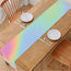Bring simple style and everyday practicality to your dining space with the Pastel Holographic Print Table Runner, made from linen-like polyester fabric that offers a natural texture and classic look. Designed for daily use, this table runner enhances your table setting while providing reliable protection for your furniture.