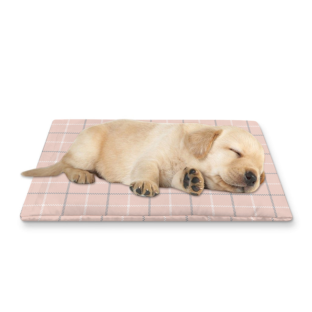 The Pastel Pink Tattersall Pattern Print Pet Cooling Mat Cover is ideal for small to medium-sized pets such as cats and dogs. Whether placed in a crate, on the floor, or in your car, it adds comfort without requiring any complex setup. It's a practical choice for pet owners looking for something stylish, functional, and easy to maintain.
