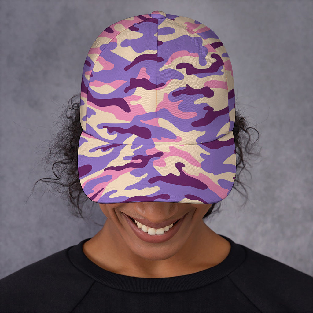 Top off your look with the stylish and functional Pastel Purple Camouflage Print Baseball Cap. Designed for comfort and durability, this baseball cap is the perfect accessory for casual outings, outdoor activities, or simply elevating your everyday style. Its sleek design and practical features make it a wardrobe essential for anyone who values both form and function.