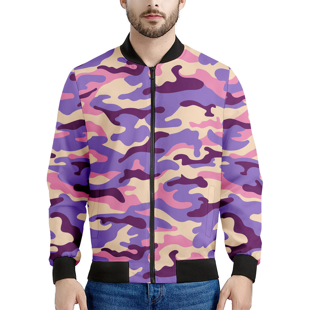 Are you looking for unique bomber jackets? Check our Pastel Purple Camouflage Print Men's Bomber Jacket on GearFrost. Our bomber jackets are handcrafted to the highest quality standards and made-to-order for you!