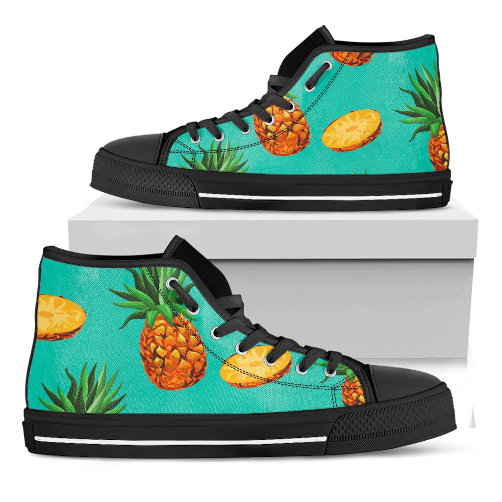 Are you looking for unique sneakers? Check our Pastel Turquoise Pineapple Pattern Print Black High Top Sneakers on GearFrost. Our sneakers are handcrafted to the highest quality standards and made-to-order for you!