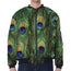 Peacock Tail Print Zip Sleeve Bomber Jacket