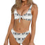 Grey And White Yin Yang Pattern Print Front Bow Tie Bikini
