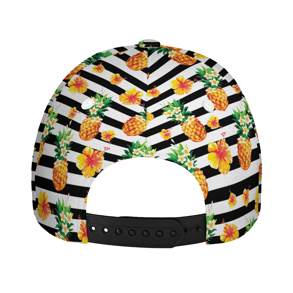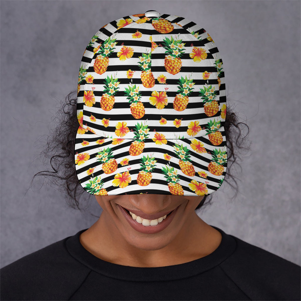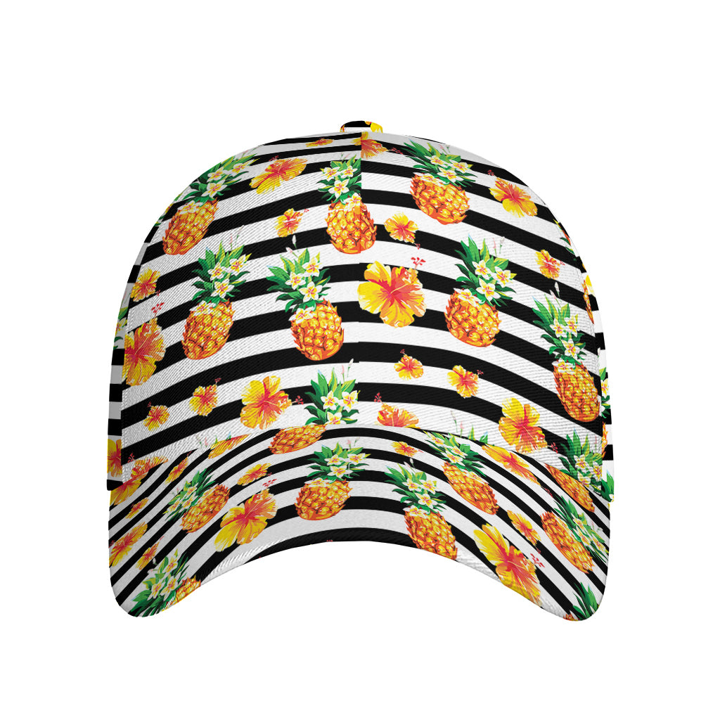 Top off your look with the stylish and functional Pineapple And Hibiscus Striped Print Baseball Cap. Designed for comfort and durability, this baseball cap is the perfect accessory for casual outings, outdoor activities, or simply elevating your everyday style. Its sleek design and practical features make it a wardrobe essential for anyone who values both form and function.
