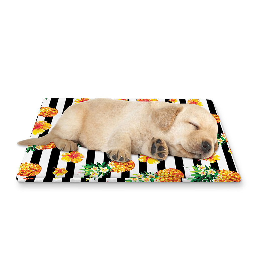 The Pineapple And Hibiscus Striped Print Pet Cooling Mat Cover is ideal for small to medium-sized pets such as cats and dogs. Whether placed in a crate, on the floor, or in your car, it adds comfort without requiring any complex setup. It's a practical choice for pet owners looking for something stylish, functional, and easy to maintain.