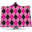 Pink And Black Argyle Pattern Print Hooded Blanket