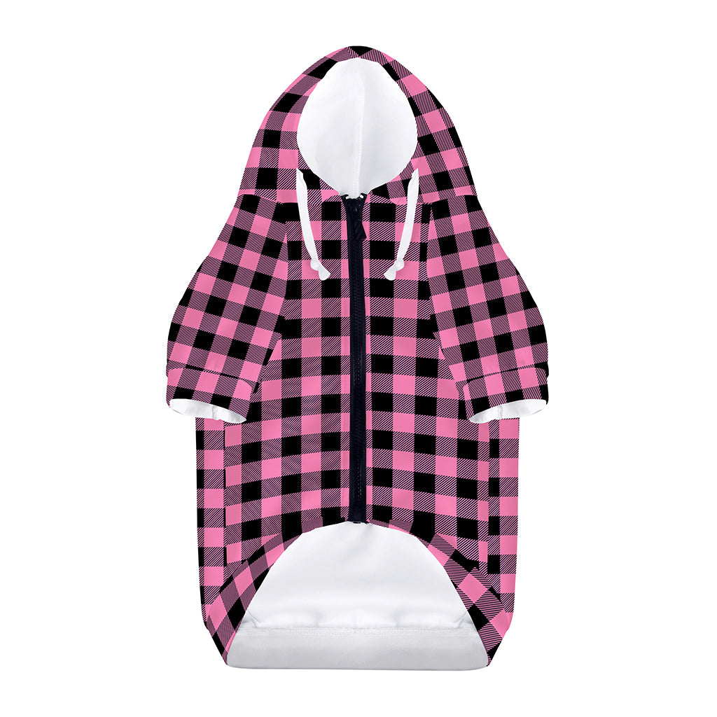 The Pink And Black Buffalo Check Print Dog Zip Up Hoodie is more than just pet clothing—it’s a way to express your style while offering practical benefits. From lounging at home to neighborhood strolls, this hoodie provides an easy wardrobe addition for pets that don't mind dressing up.