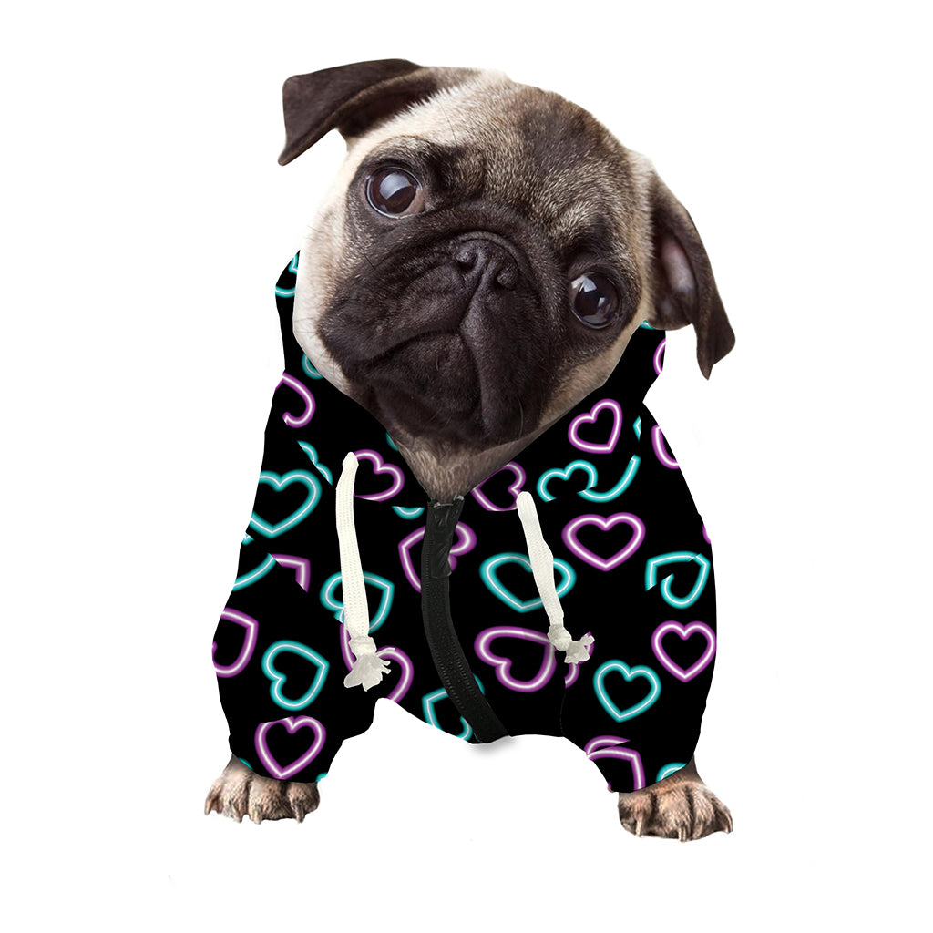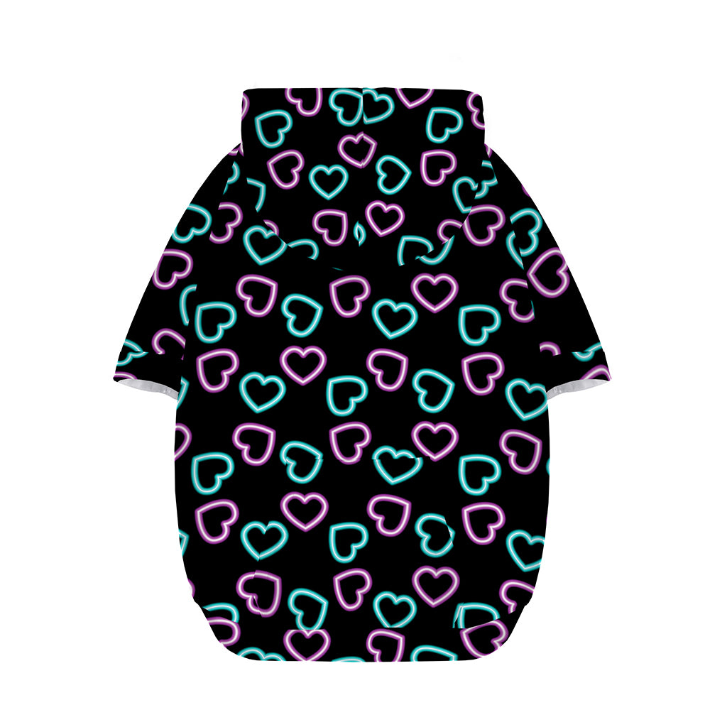The Pink And Blue Lights Heart Pattern Print Dog Zip Up Hoodie is more than just pet clothing—it’s a way to express your style while offering practical benefits. From lounging at home to neighborhood strolls, this hoodie provides an easy wardrobe addition for pets that don't mind dressing up.