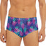 Stay confident at the pool or beach with the Pink And Blue Tropical Palm Leaf Print Men's Triangle Swim Briefs. Designed with a blend of 88% polyester and 12% spandex, these swim briefs provide comfort, stretch, and support for everyday swimwear use. The smooth fabric and regular fit make them practical for both swimming and lounging.
