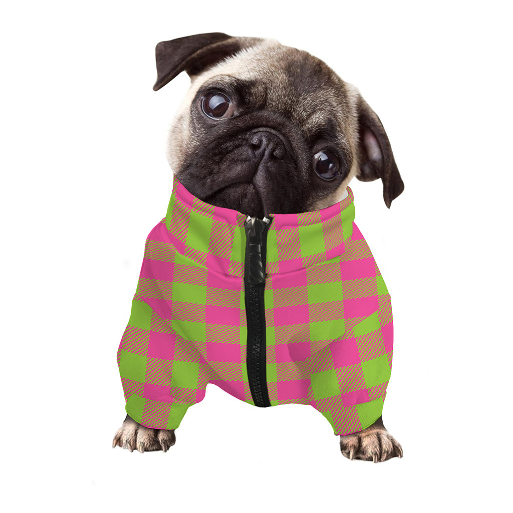 The Pink And Green Buffalo Plaid Print Dog Zip Up Jacket makes everyday walks, car rides, or casual moments at home more enjoyable. Its lightweight build ensures your pet won’t feel restricted, while its clean design adds a hint of personality without going over the top.