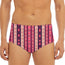 Stay confident at the pool or beach with the Pink And Purple Southwestern Print Men's Triangle Swim Briefs. Designed with a blend of 88% polyester and 12% spandex, these swim briefs provide comfort, stretch, and support for everyday swimwear use. The smooth fabric and regular fit make them practical for both swimming and lounging.
