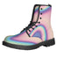 Step out with confidence in the Pink And Teal Holographic Print Lace-Up Boots. Built with a 100% vegan PU leather upper and a durable rubber outsole, these lace-up boots balance everyday comfort with reliable traction—great for daily wear without overpromising performance.