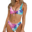 Pink And Teal Tie Dye Print Front Bow Tie Bikini