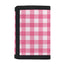 Keep your essentials neatly organized with the Pink And White Buffalo Check Print Trifold Wallet. Designed with a classic trifold layout, this wallet offers practical storage space in a lightweight, easy‑to‑carry design that suits daily use for work, school, or travel.