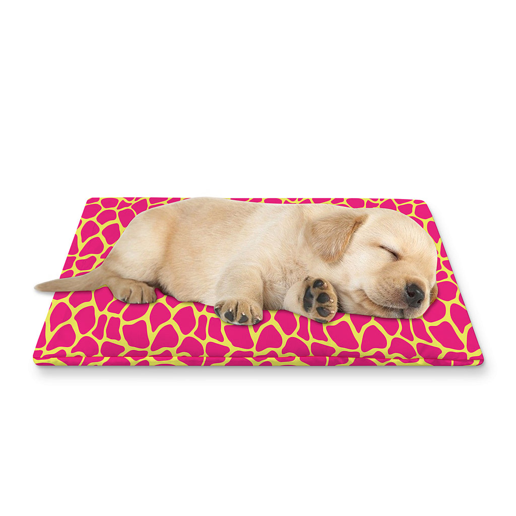 The Pink And Yellow Giraffe Pattern Print Pet Cooling Mat Cover is ideal for small to medium-sized pets such as cats and dogs. Whether placed in a crate, on the floor, or in your car, it adds comfort without requiring any complex setup. It's a practical choice for pet owners looking for something stylish, functional, and easy to maintain.
