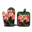 The Pink And Yellow Plumeria Flower Print Oven Mitt And Pot Holder Set is a reliable kitchen essential designed to keep your hands and surfaces safe during everyday cooking. Made from durable polyester with an insulation cotton lining, this set offers comfort and practical heat resistance for common kitchen tasks.