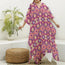 Pink Aztec Geometric Pattern Print Silk V-Neck Kaftan Dress