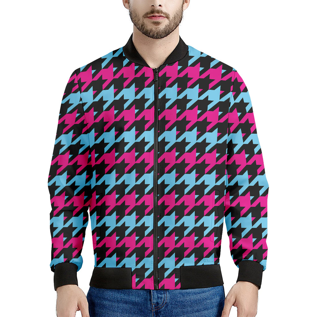 Are you looking for unique bomber jackets? Check our Pink Blue And Black Houndstooth Print Men's Bomber Jacket on GearFrost. Our bomber jackets are handcrafted to the highest quality standards and made-to-order for you!