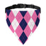 The Pink Blue And White Argyle Pattern Print Over The Collar Dog Bandana offers a simple way to dress up your dog or cat without fuss. Whether you’re heading out for a stroll or snapping cute photos, this collar-accessory bandana is a low-maintenance, stylish choice for pets of all sizes.
