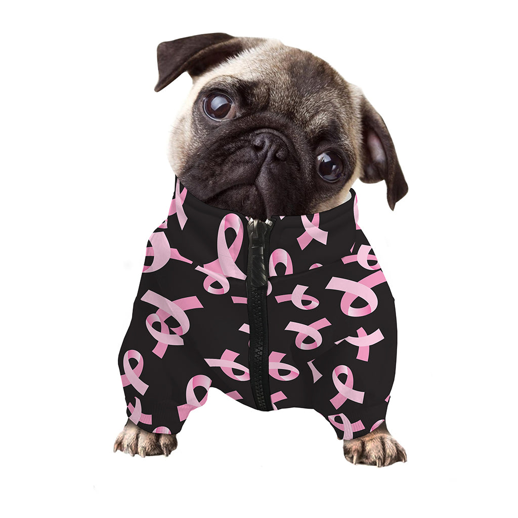 Give your pet a touch of comfort and casual style with the Pink Breast Cancer Ribbon Pattern Print Dog Zip Up Jacket. This lightweight jacket is designed for everyday wear, offering basic warmth and a cozy fit for your furry companion without compromising ease or simplicity.