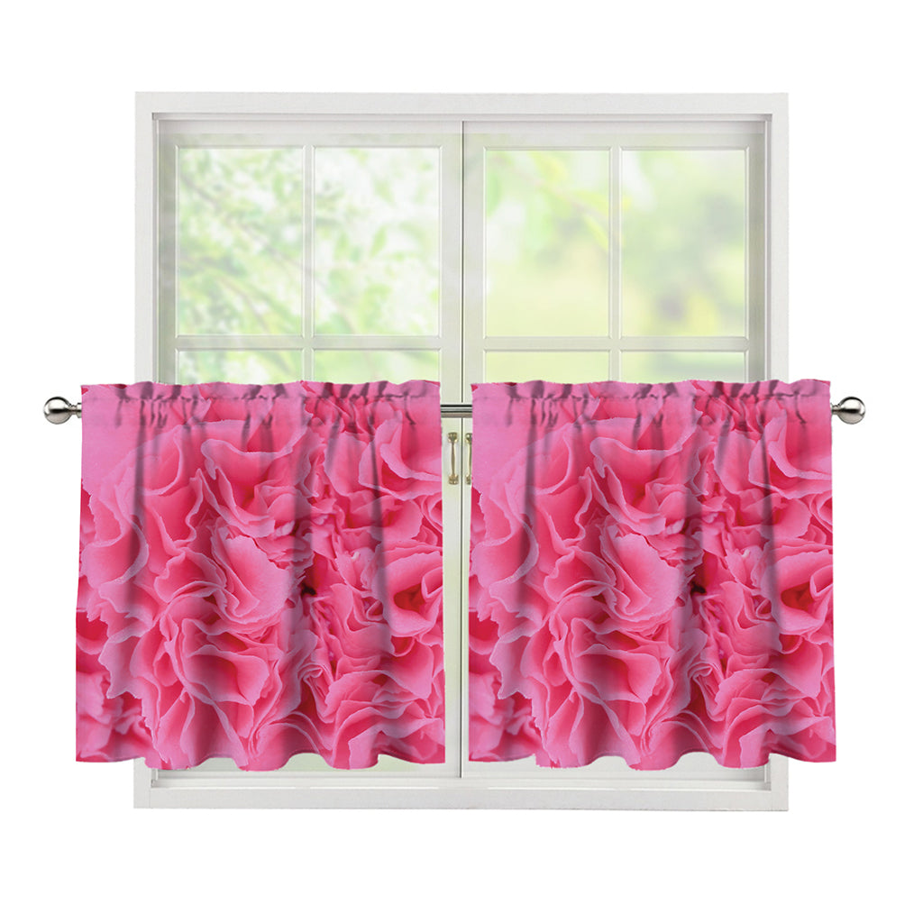 Pink Carnation Flower Print Tier Curtains