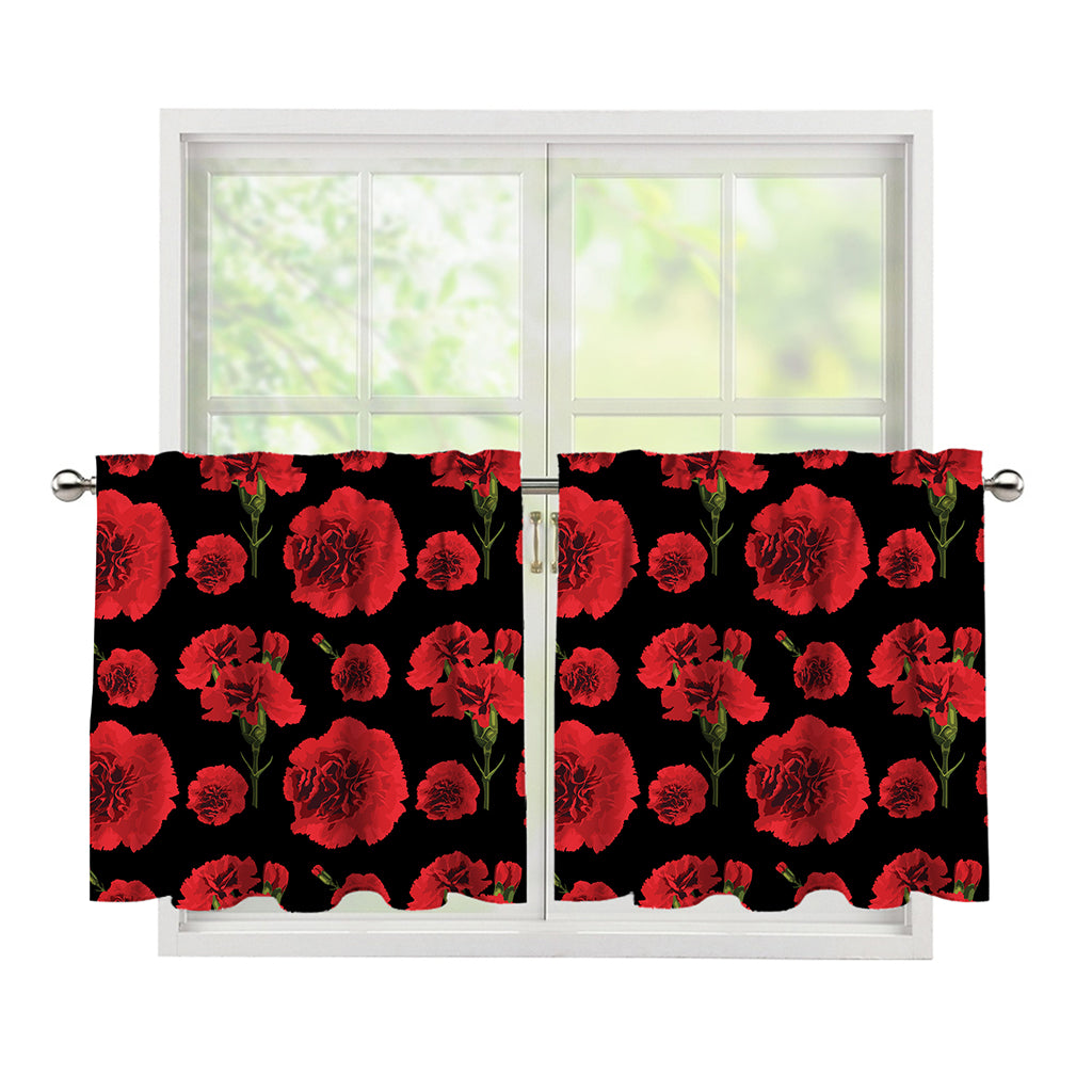 Red And Black Carnation Pattern Print Tier Curtains