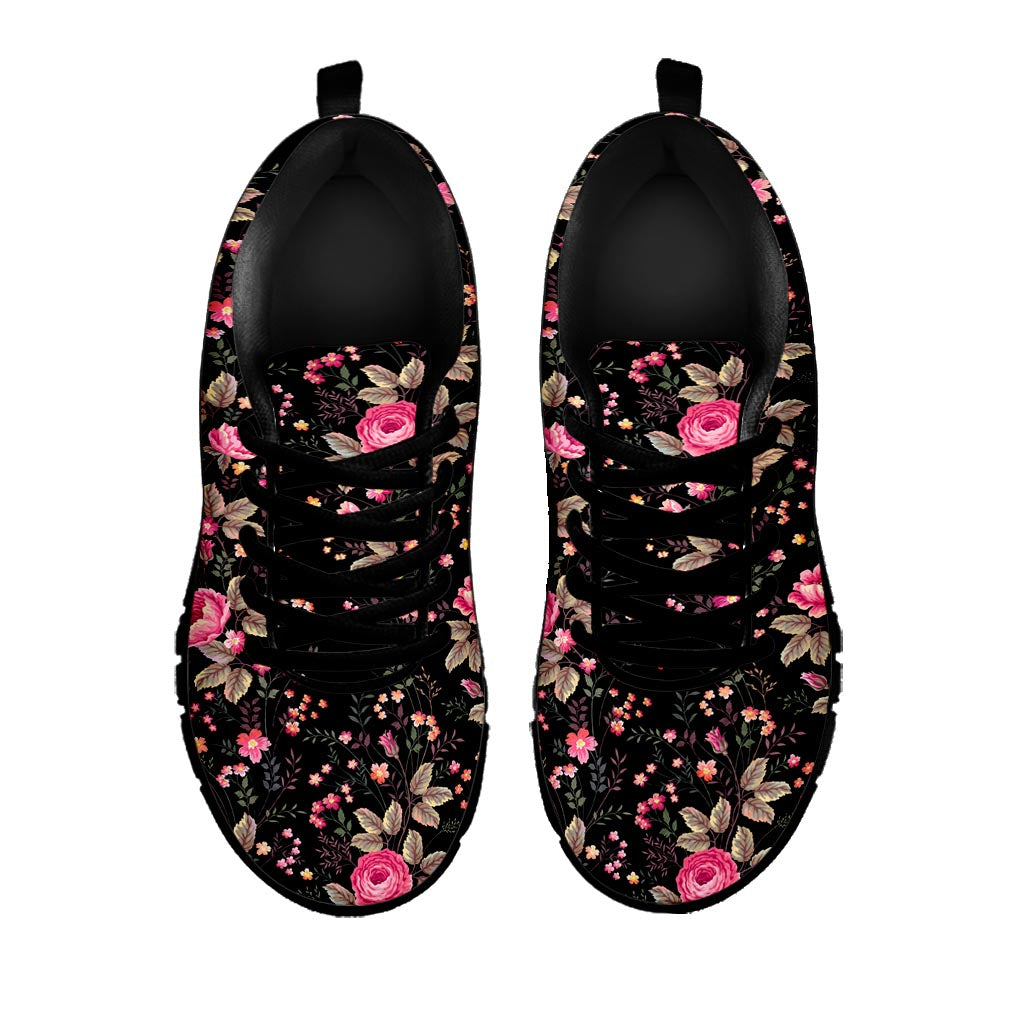 Are you looking for unique shoes? Check our Pink Floral Flower Pattern Print Black Running Shoes on GearFrost. Our shoes are handcrafted to the highest quality standards and made-to-order for you!