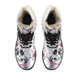 Sugar Skull Pattern Print Faux Fur Leather Boots