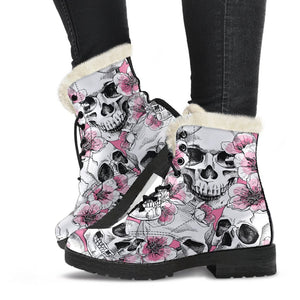 Combine cozy warmth with standout style in the versatile Pink Flowers Skull Pattern Print Faux Fur Leather Boots. Designed to keep you comfortable without compromising on fashion, these faux fur leather boots are a must-have addition to your footwear collection. Whether you’re braving chilly weather or adding an edgy touch to your outfit, these boots offer the perfect mix of practicality and personality.