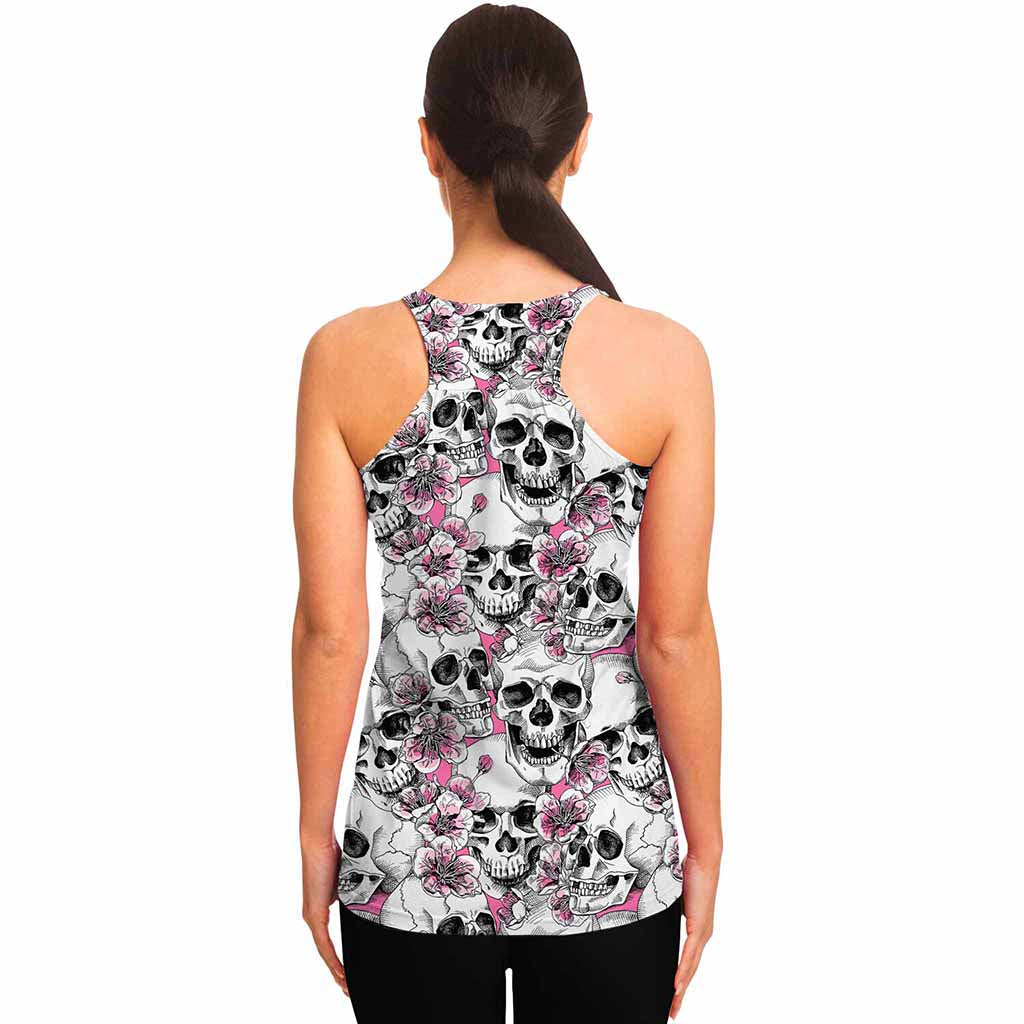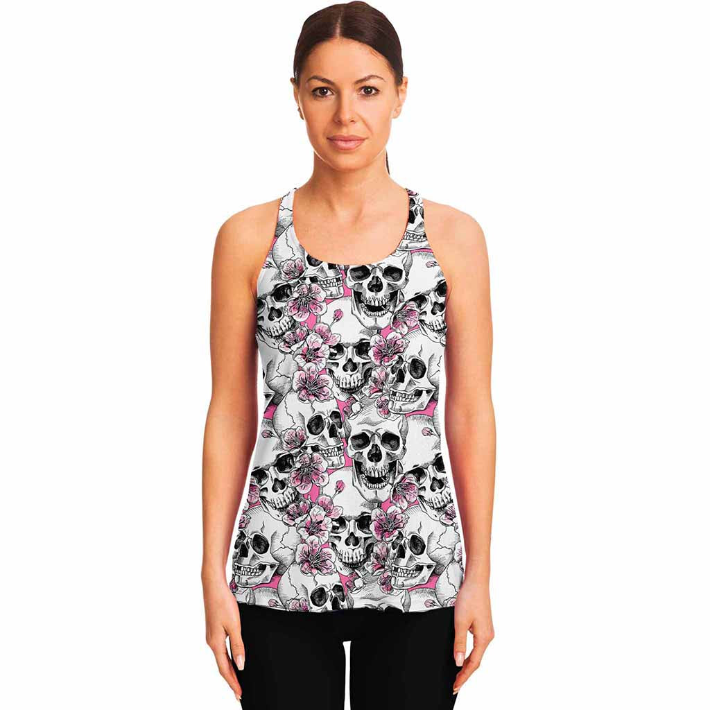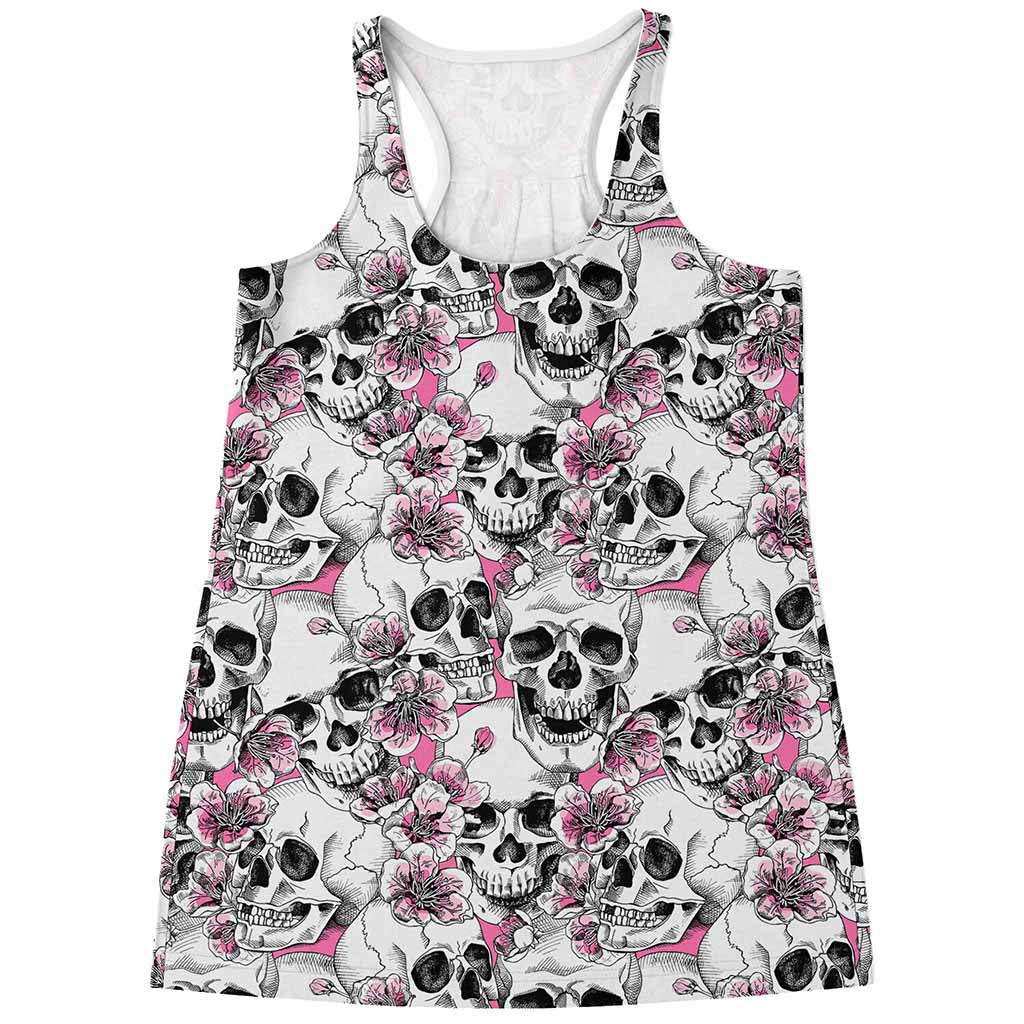 Stay cool and stylish with the versatile Pink Flowers Skull Pattern Print Women's Racerback Tank Top. Designed for women who prioritize comfort and functionality, this racerback tank top is the perfect addition to your active and casual wardrobe. Whether you’re working out, running errands, or relaxing at home, this tank top offers a sleek and flattering fit that keeps you looking great and feeling confident.