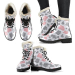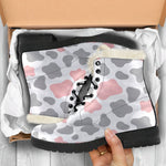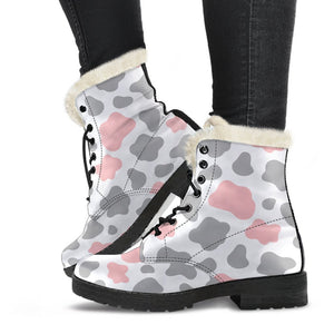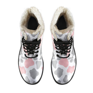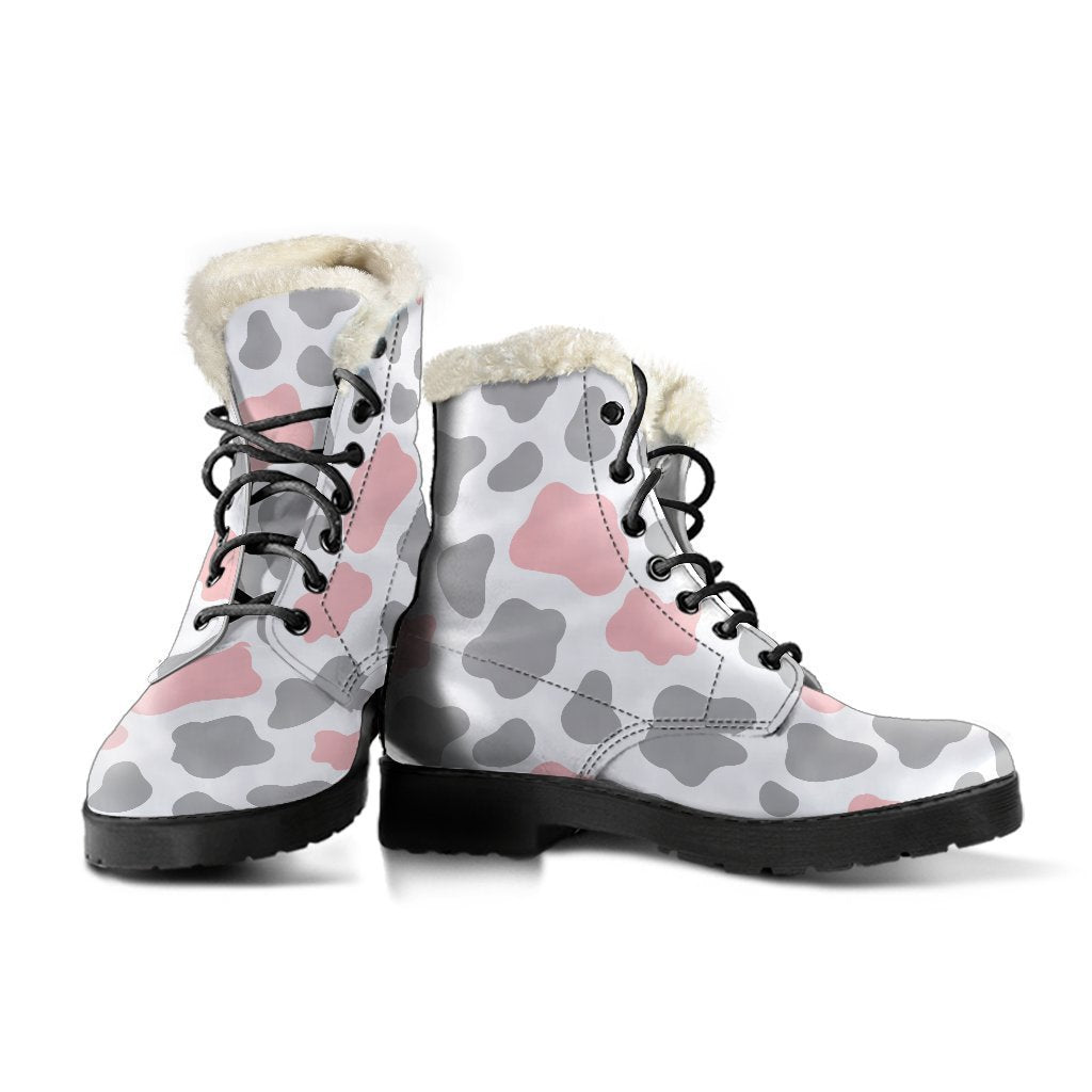 Combine cozy warmth with standout style in the versatile Pink Grey And White Cow Print Faux Fur Leather Boots. Designed to keep you comfortable without compromising on fashion, these faux fur leather boots are a must-have addition to your footwear collection. Whether you’re braving chilly weather or adding an edgy touch to your outfit, these boots offer the perfect mix of practicality and personality.