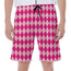 Pink Harlequin Pattern Print Men's Beach Shorts