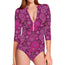 Pink Paisley Pattern Print Long Sleeve Swimsuit