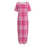 Pink Tartan Pattern Print Short Sleeve Long Nightdress