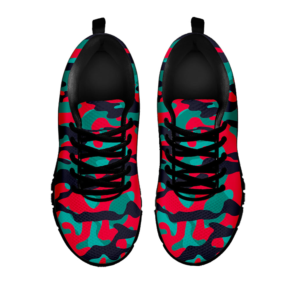 Are you looking for unique shoes? Check our Pink Teal And Black Camouflage Print Black Running Shoes on GearFrost. Our shoes are handcrafted to the highest quality standards and made-to-order for you!